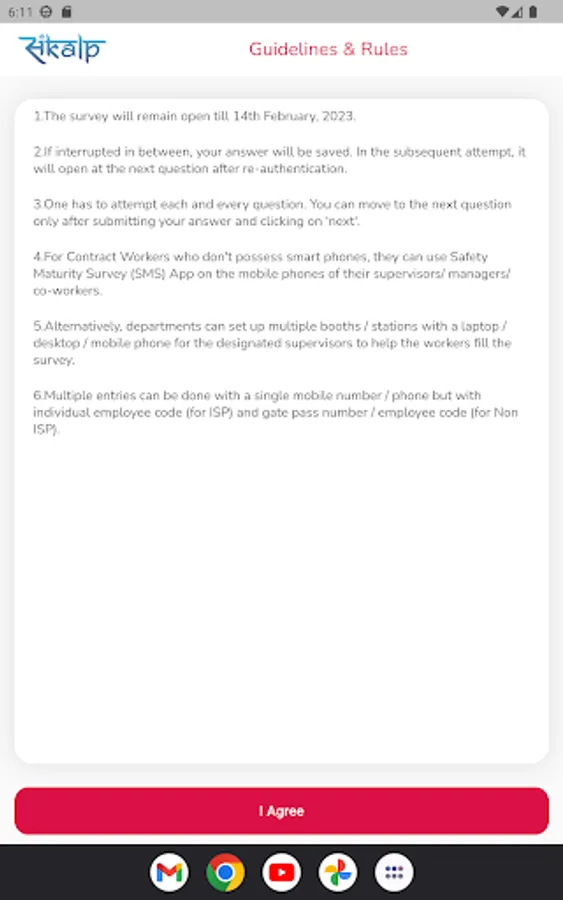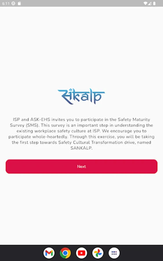 This application is geared towards taking survey from ISP Employees as well as non-ISP Employees to improve the ISP industrial Safety Standards. This application allow user to survey for Safety purpose.