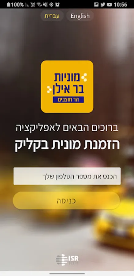 Application for ordering taxis Bar Ilan - Mount Hotzvim, Jerusalem