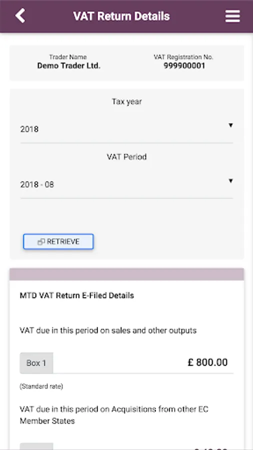 App can be used to view VAT Returns, Payments and Liabilities. User can upload MTD VAT CSV via Dropbox and file the returns to HMRC using this app.