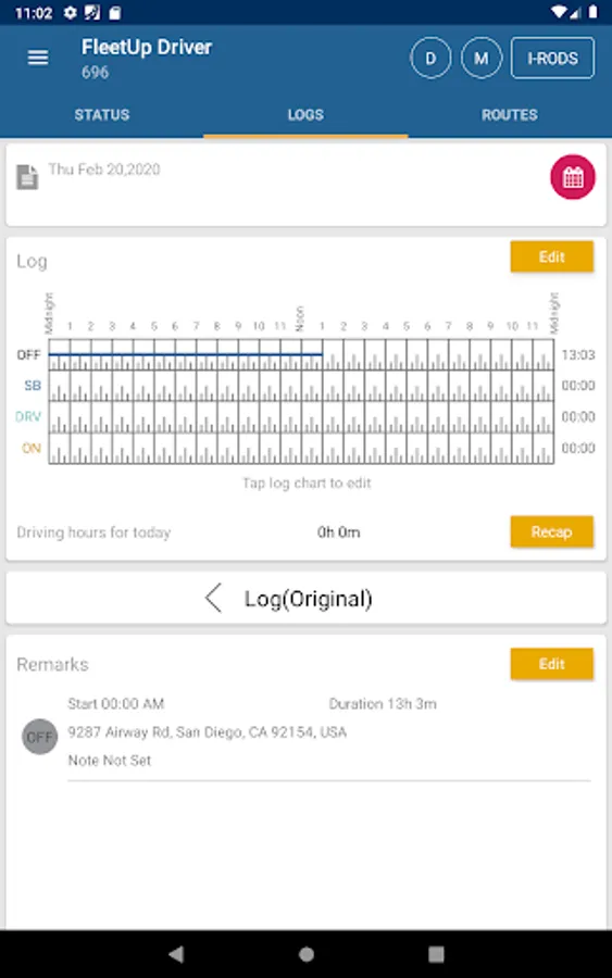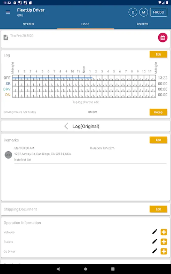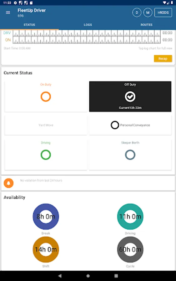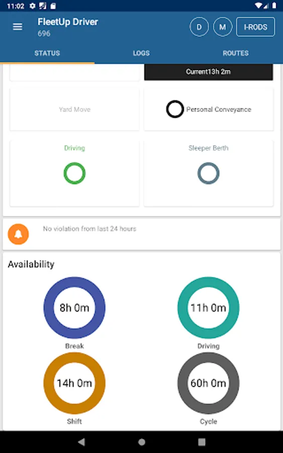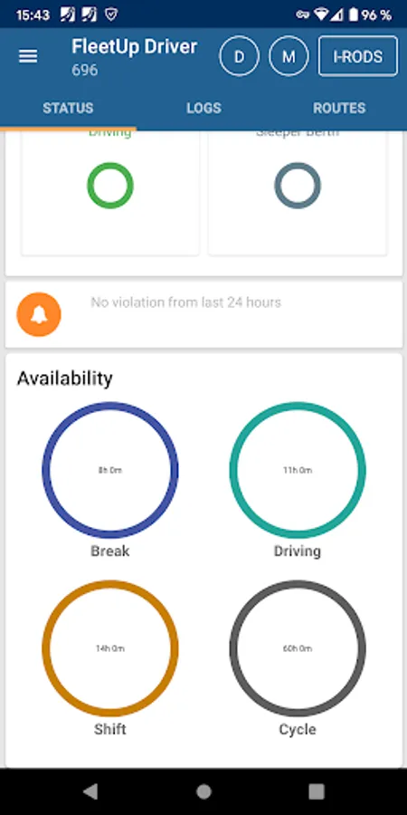 Drivers will now be able to view their Hours of Service (HOS) with our newest feature. Amount of hours driven, rest, and available driving hours left will be shown, along with driving time alerts and so much more!
