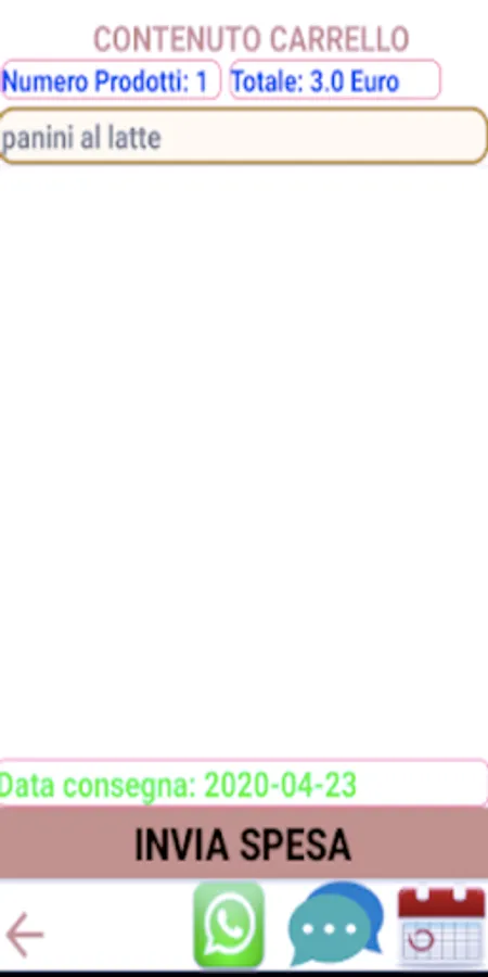 With this application it is possible to generate a shopping list starting from a list of products made available. It is then possible to send the list to the shop directly by message or email.