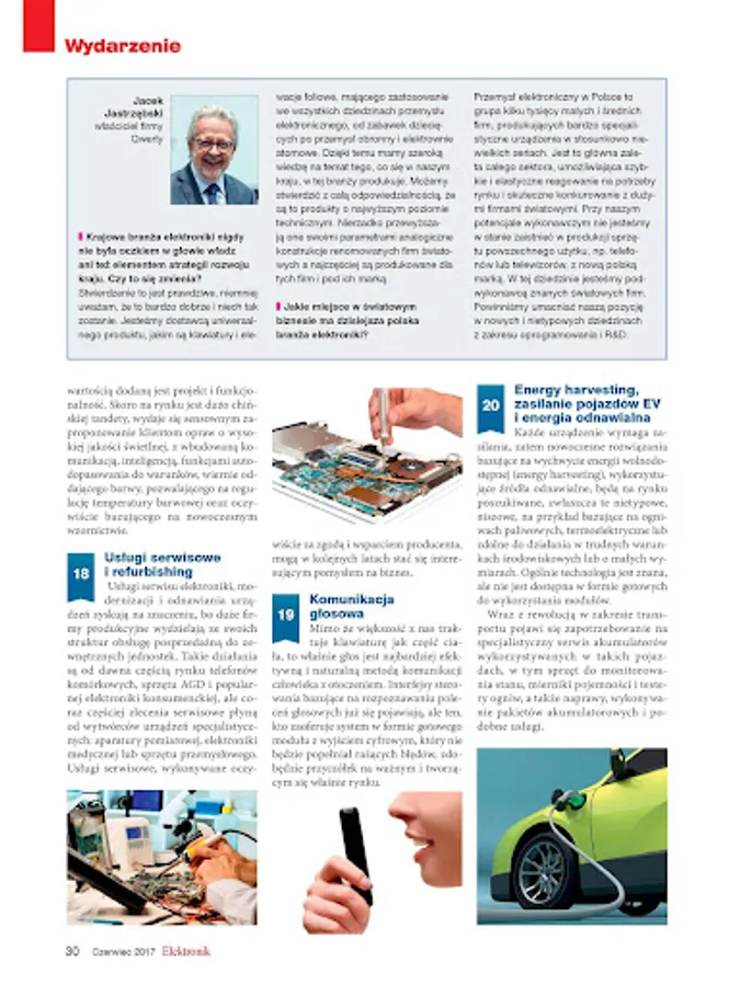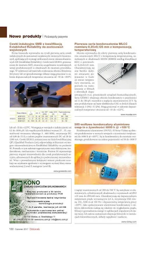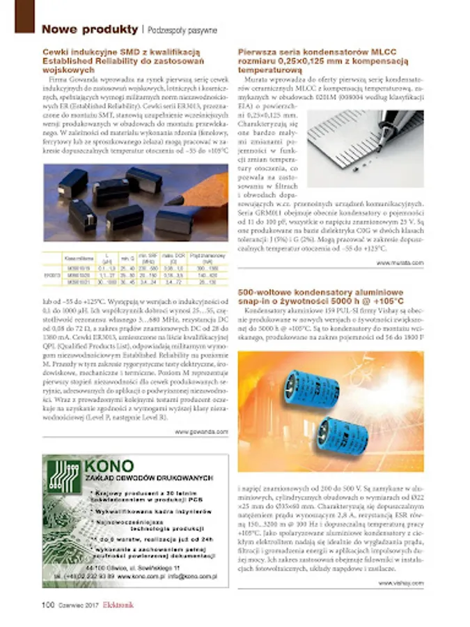 Polish electronics industry is a monthly magazine devoted to professional electronics. The magazine is published on the market since 1997 and is addressed to Polish designers, managers, scientists and traders in the industry. Elektronik magazine aims to inform readers about all major news market, both the components, technology, applications, as well as the economy. It is read by all employees of Polish electronics companies, also reaches institutes and universities and organizations and associations related to electronics and automation. Elektronik lobby groups together Polish electronics, information and used it contributes to the development and achievements of the electronics industry.