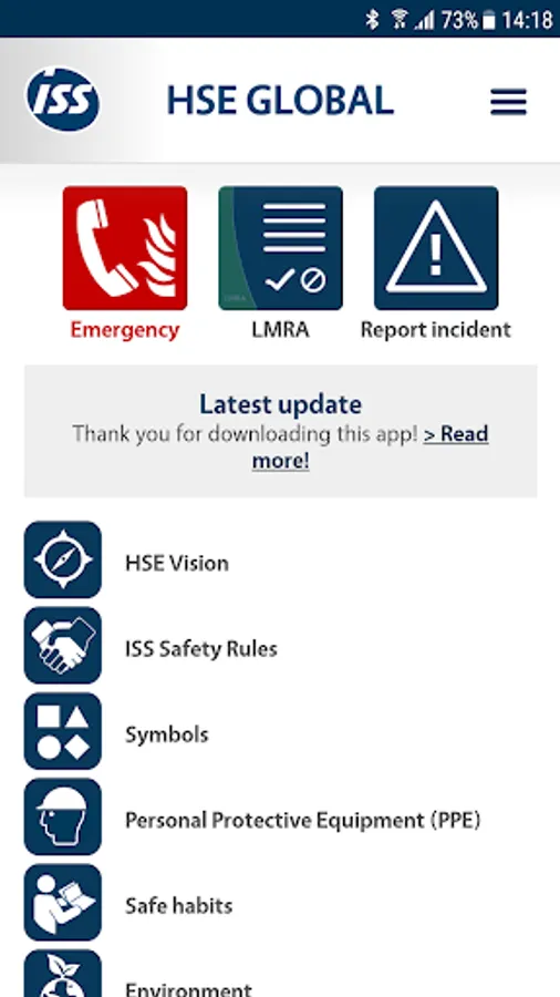 Within the framework of the HSE app ISS effectively develops its HSE (Health, Safety and Environment) management in order to support our values, codes of conduct, vision and policy. The goal is to enable a systematic and consistent approach to the HSE across the ISS Group.