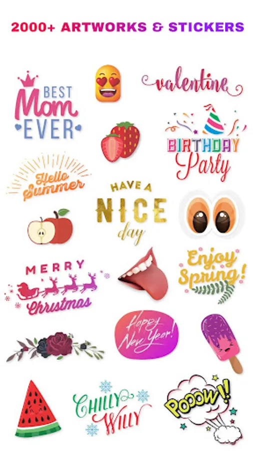 - Ready to use professionally designed graphics like stickers, artworks & emoji.