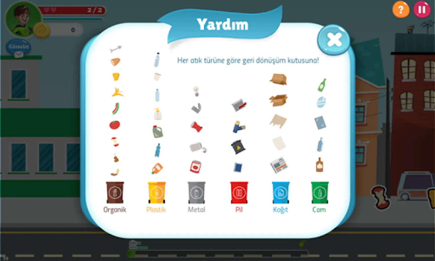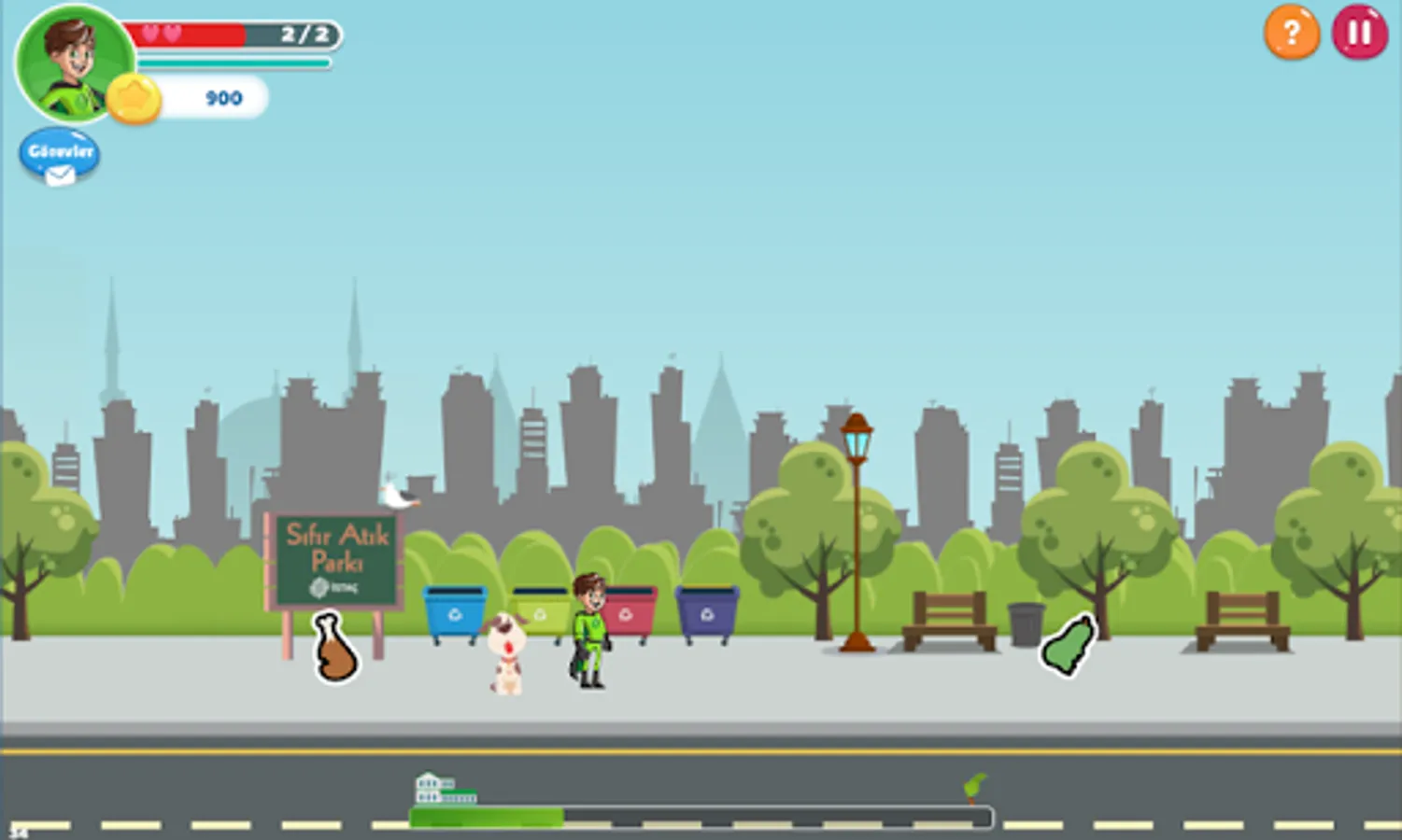 You've got to collect the garbage that's scattered around the city and recycle them!