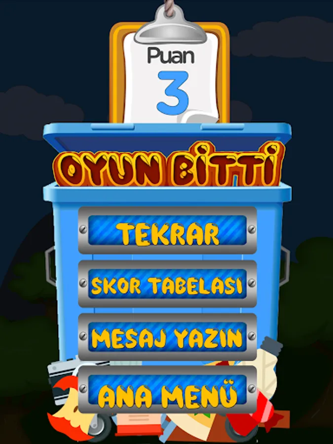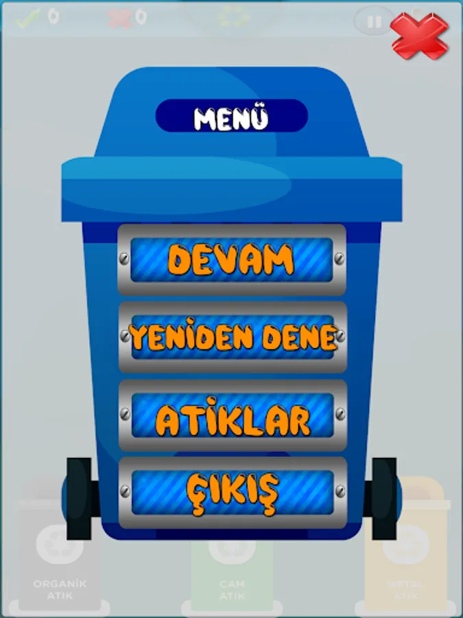 Each waste is considered as 1 point. The right to throw 5 waste into the wrong box. The wastes thrown between the boxes are considered as 1 penalty point and they are deducted from the correct waste score.