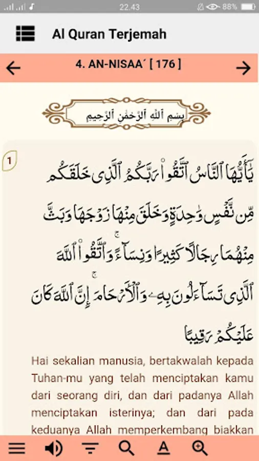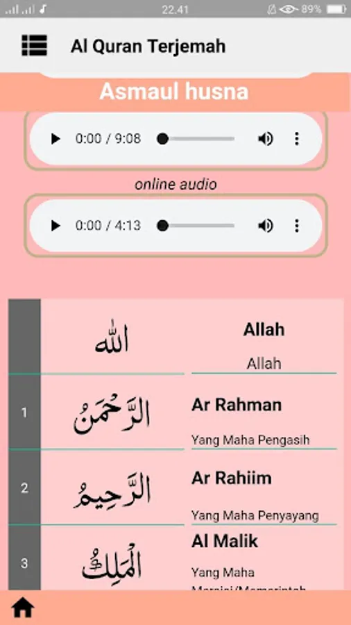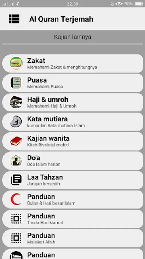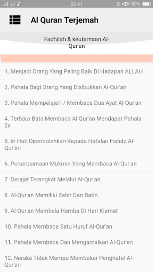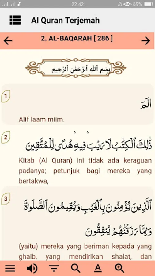 The application of Al Qur'an and Indonesian Translations contains 30 complete chapters accompanied by translations in Indonesian, so that it can be easier to understand the meaning in the Qur'an.