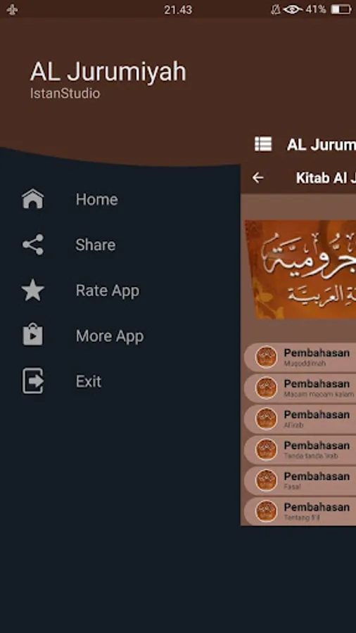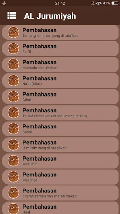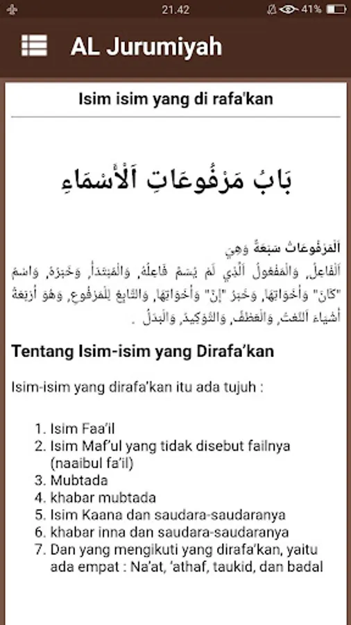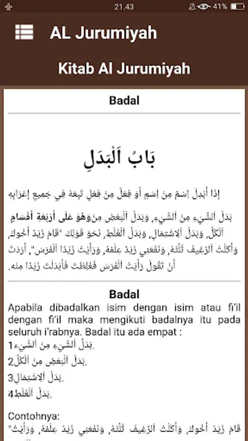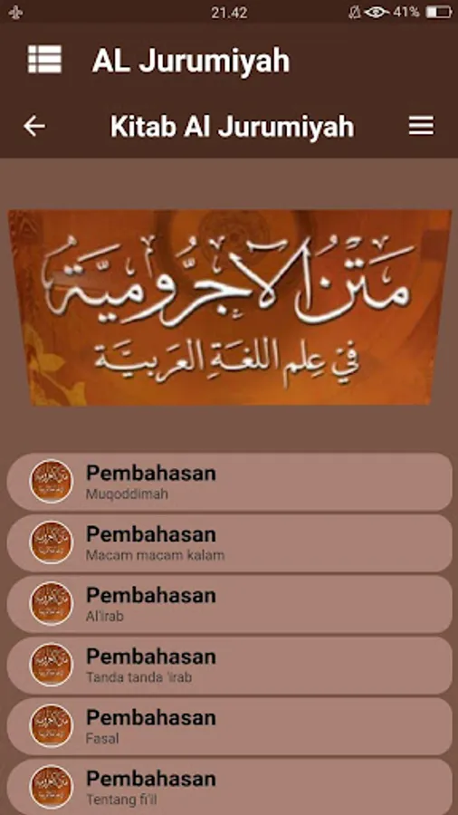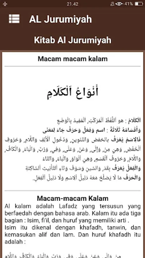 Kitab Al Jurumiyah or jurmiyyah is one of the basic books in science nahwu authored by Al Imam Ash Shanhajy very famous in Indonesia this .. jurumiyyah book contains a collection of material that covers almost the entire nahwu core nahwu science. which contains materials about the essential terms of science nahwu like isim, fi'il and letters.