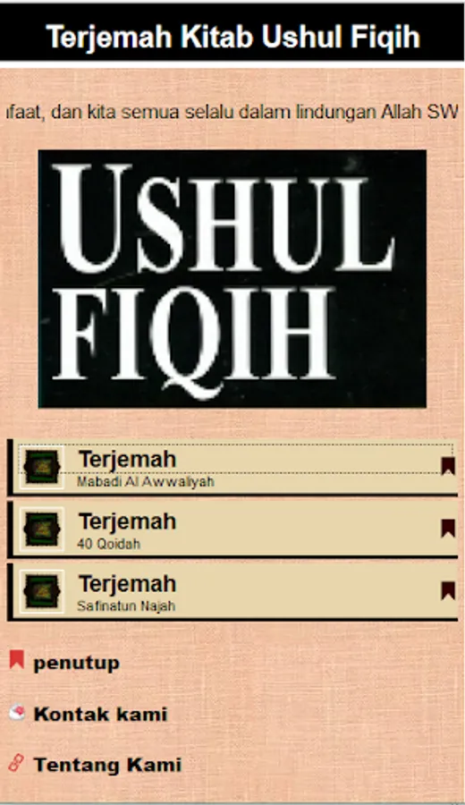 Mabadi Fiqh Juz 3, Terjemah Mabadi Fiqh Juz 3, Book Bulughul maram, Book Hadit bahsul jurisprudence, Book Risalatul mahid, Blood habits of women, the Book of Sahih bukhori, Book Translations valid bukhori, Book of the traveler, the discussion of the Book of prayer on the way, the Book of the traveler, Practice book of prayers on the way, the book of Fath Qorib, Book Translations fathul Qorib (Taqrib), Book Safinatun An Najah, Safinatun Translation of the Book of An Najah, mabadi awaliyah, Translations mabadi awaliyah, 40 rules of jurisprudence,