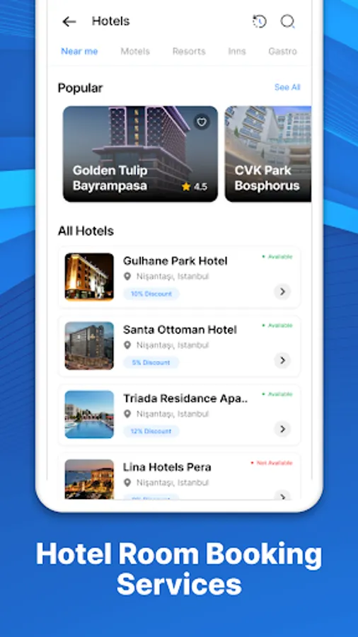 Looking for a place to stay? Our app makes it easy to find and book hotels that fit your needs and budget. From luxury accommodations to cozy guesthouses, we've got you covered.