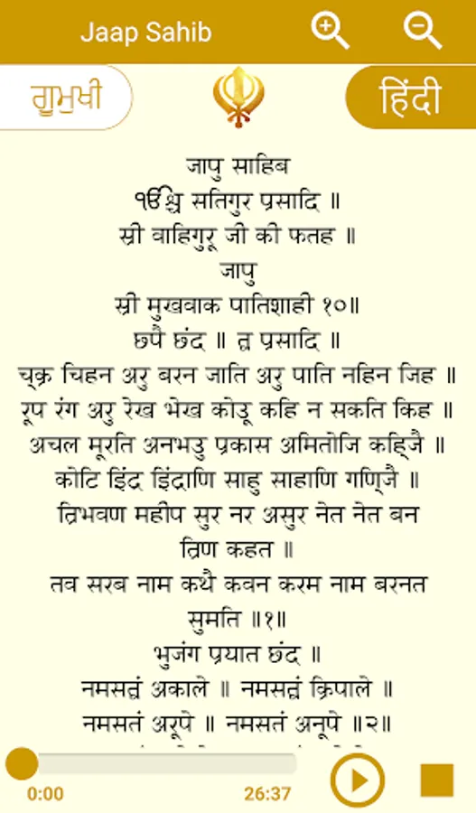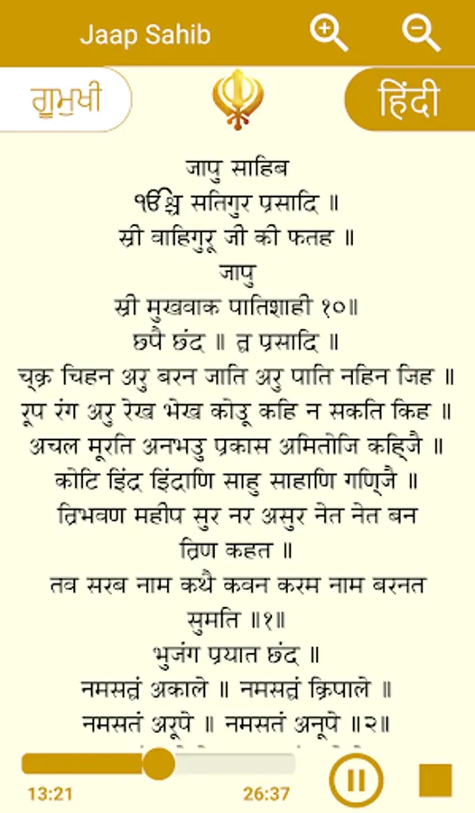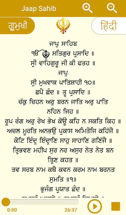 "JAAP Sahib Ji Paath" app lets you connect with the Precious Words Of Shri JAAP Sahib Ji Paath anywhere, anytime.