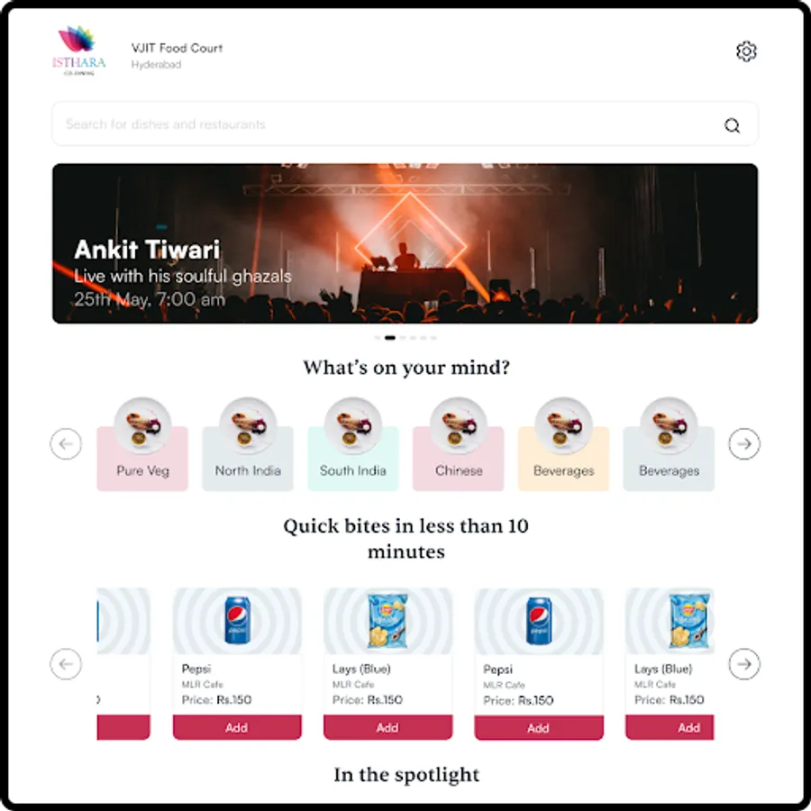 Isthara Kiosk helps you to order food from Isthara Food Courts by own.