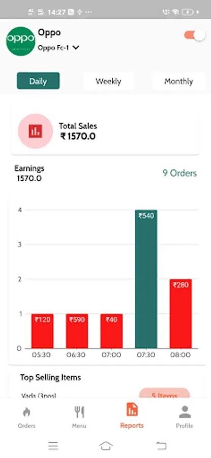 5. It also gives them a pictorial representation of their sale which they made for that day along with the total as well.