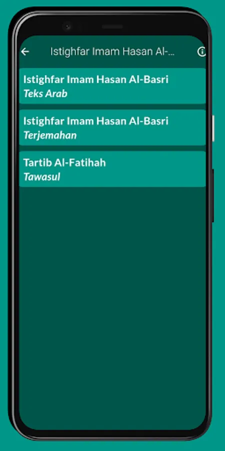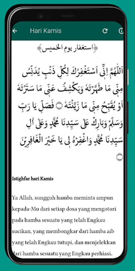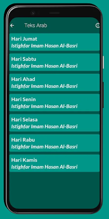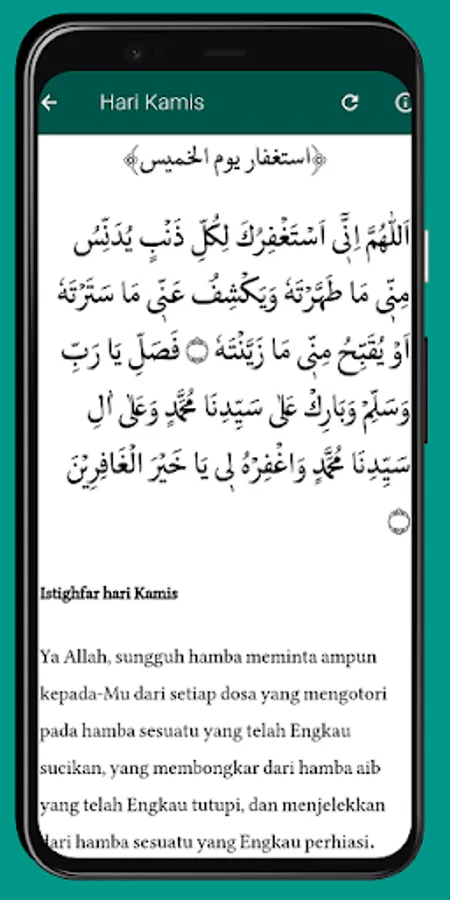 Istighfar Imam Hasan Al-Basri Complete Translation Application (Friday to Thursday), also equipped with wirid sacran, ratib haddad, ratib al-athas, hizib bahr, hizib nashor, and hizib nawawi.