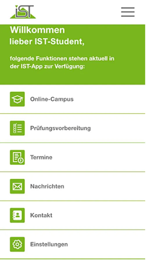 In the app the IST Study Institute and the IST College of Management, see the "Online Campus", "test preparation", "Schedule", "News" and "Contact". You can only use this app if you are a student of the IST Study Institute or the IST College of Management.