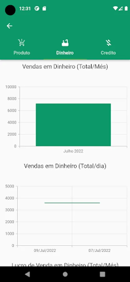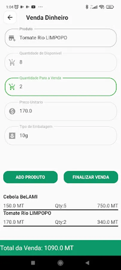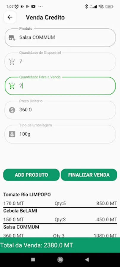 gestão de vendas (venda em dinheiro e control de crédito). O aplicativo responde à necessidades