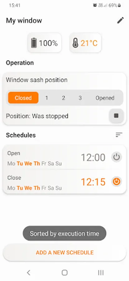 The app for manage Window Opener from Istok-Audio. It allow to open your windows at the needed time. Now you can to leave a opened window at night. You can provide fresh air in the house when you leave children or elderly relatives at home.