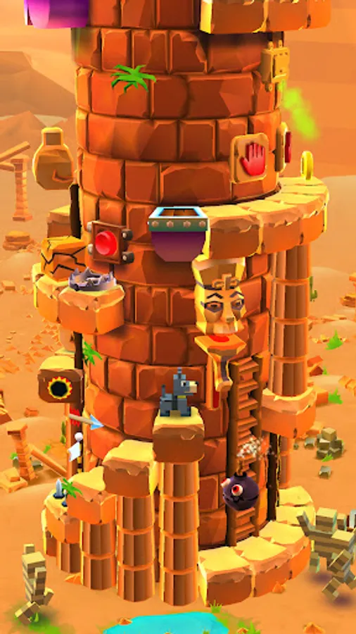 Guide blocky doodle pets (cats🐱, dogs🐶, mammoths🐘) to run, jump & climb the helix spiral stairs of the rocky castle tower! The tower stairs can be a real labyrinth! Guide your pet friends through the climbing maze, up to the highest point of the blocky castle!