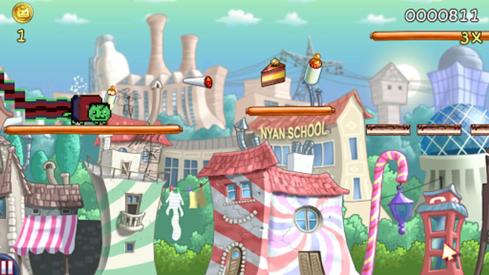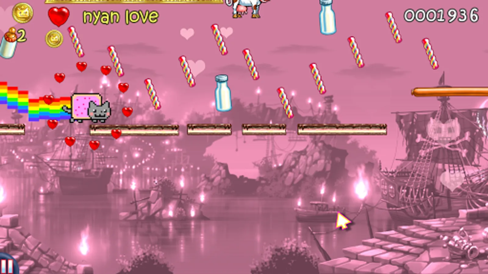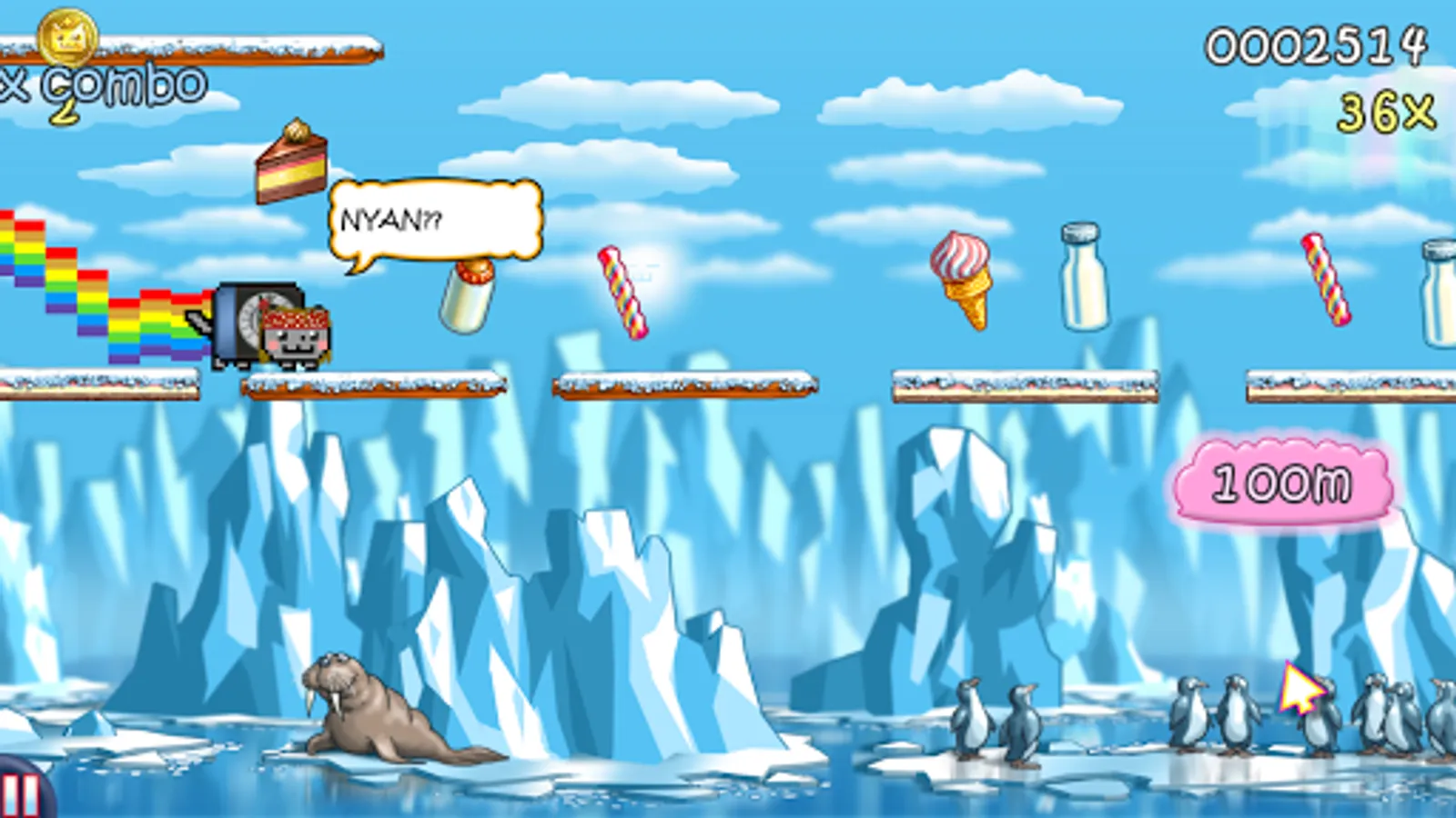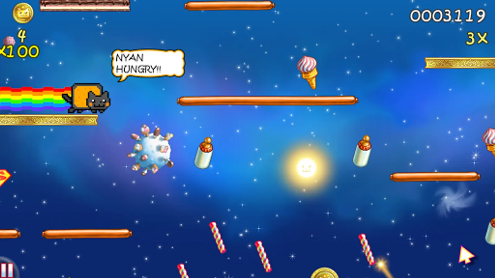 Race through the candy filled vastness of space with the internet's #1 rainbow-riding nyan space cat in this casual platformer game.