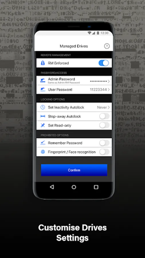 The datAshur BT Admin app enables IT Administrators to provision and enforce user policies to help users better protect data that is stored on the drive.