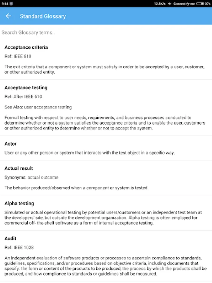 The standard ISTQB® Glossary(ordered from A-Z) for your reference. The glossary has definitions of the extract of terms used in the Foundation Level syllabus 3.1. Search for any testing terms and definitions designed to aid communication in (software) testing and related disciplines.