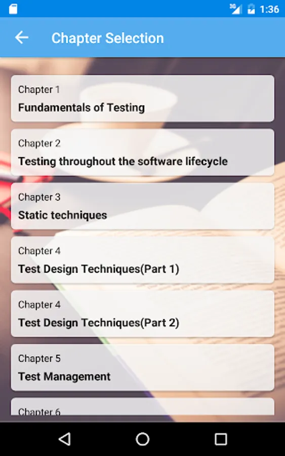 ISTQB TEST MENTOR is a free app which is a must for every ISTQB® foundation level aspirant. ISTQB Test Mentor provides Mock tests/Sample tests, chapter wise tests, glossary and useful links for your ISTQB preparation. Test your certification readiness with our challenging quiz.