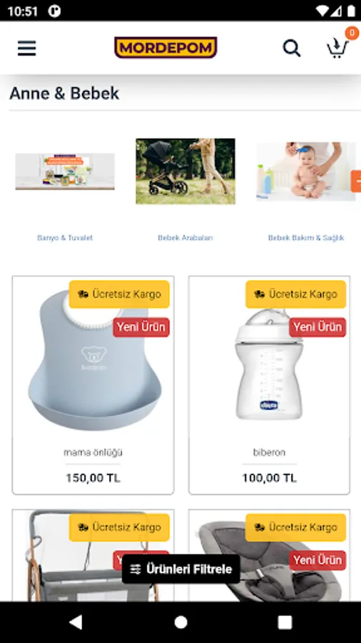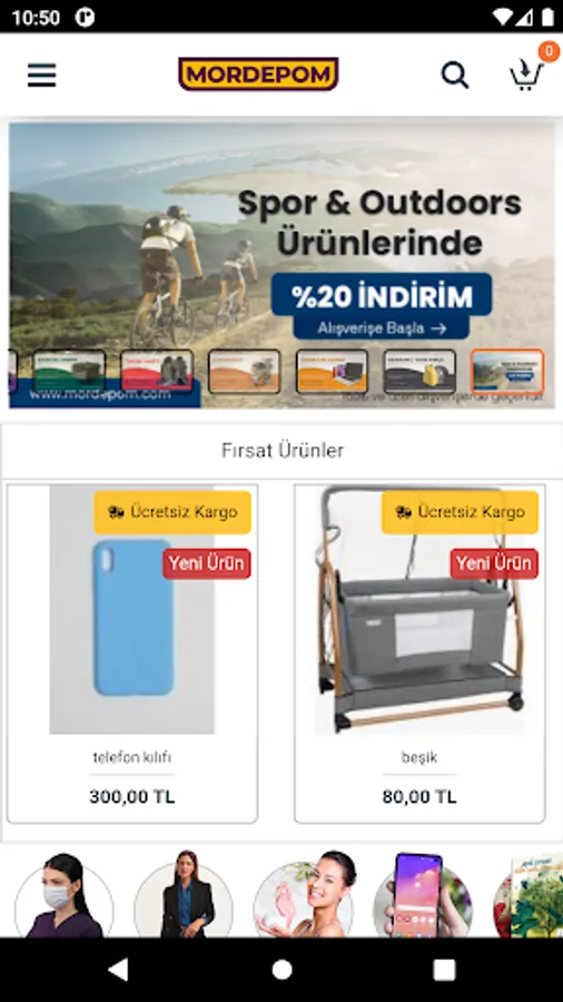 The address of online shopping is mordepom.com. With this mobile application, you can shop at mordepom.com and be informed about current campaigns and prices.