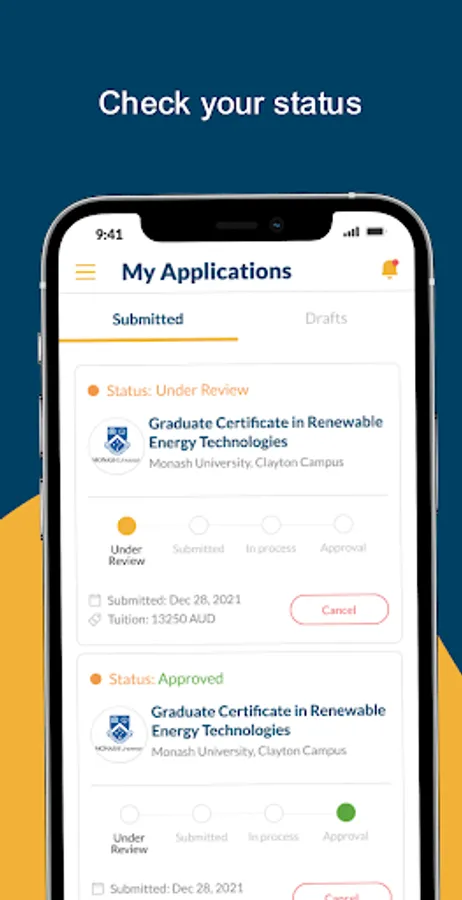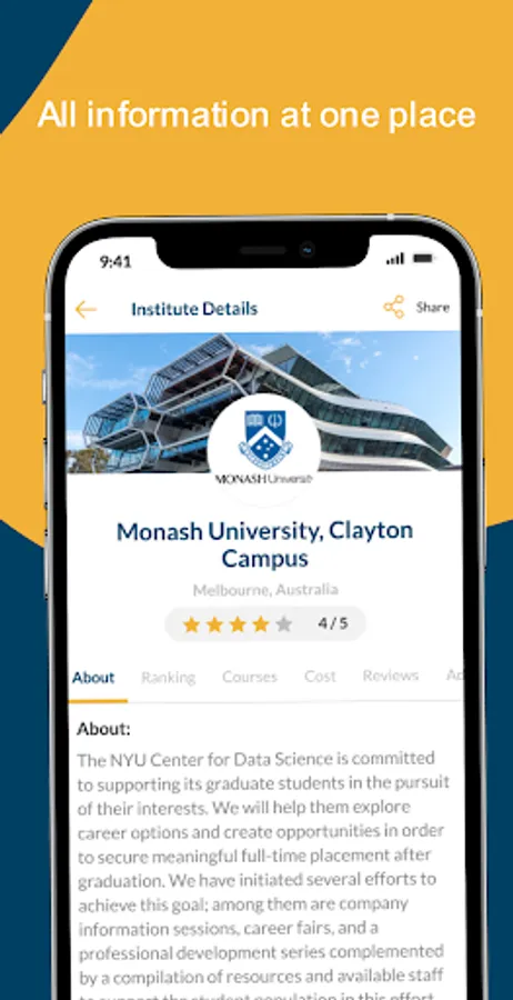 With this AI-Backed App, you can easily search for degrees & courses from your dream university that match your interests and visa eligibility from over 100 top-rated universities and colleges.