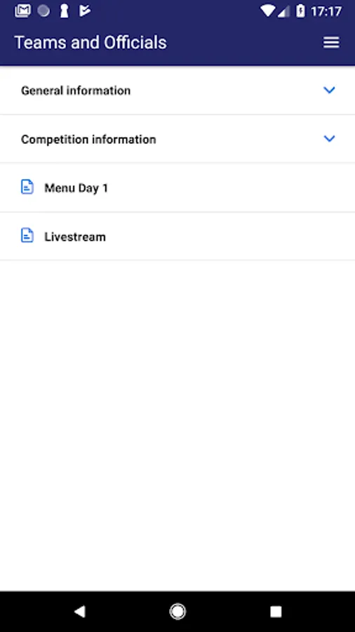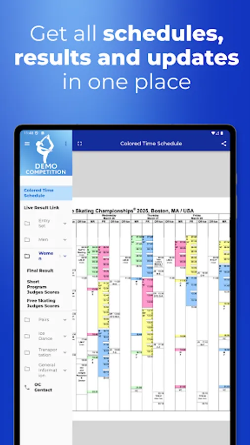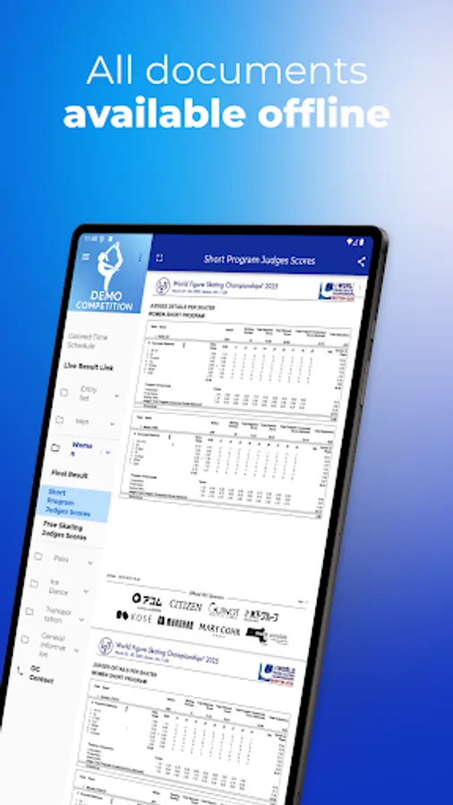 - The following documents will be available: files up to 5MB such as hotel information, Local Organizing Committee contacts, Communications, shuttle bus schedule, competition schedule, starting orders, detailed results, live result link, social events information, urgent notifications, press conference schedule, event schedule etc.