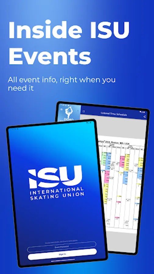 Over 40 ISU Events are held every year from the ISU Junior Grand Prix of Figure Skating, Grand Prix of Figure Skating, World Cup Short Track, World Cup Speed Skating Series and ISU Championships. The Inside Events app is an information distribution app for all ISU Events. It provides event related information to all event participants quickly and efficiently.