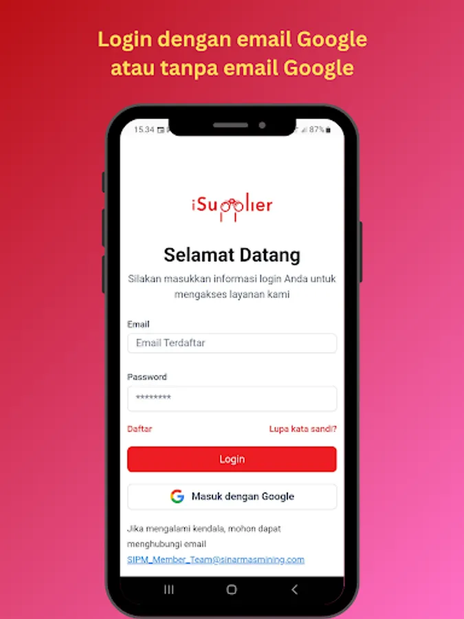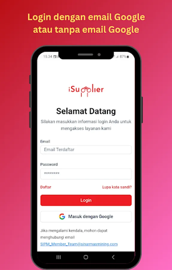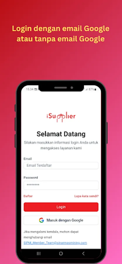 iSupplier Lite (Public) adalah sistem informasi terintegrasi yang dikhususkan untuk Mitra Kerja Sinar Mas Mining, mendukung proses prakualifikasi vendor dari hulu ke hilir, mulai dari prakualifikasi vendor dan manajemen vendor.