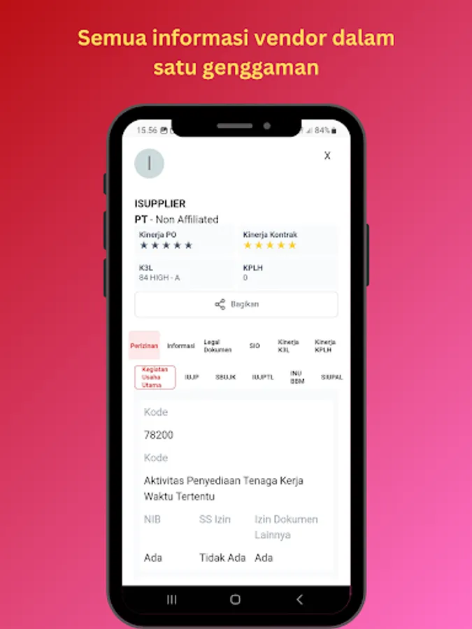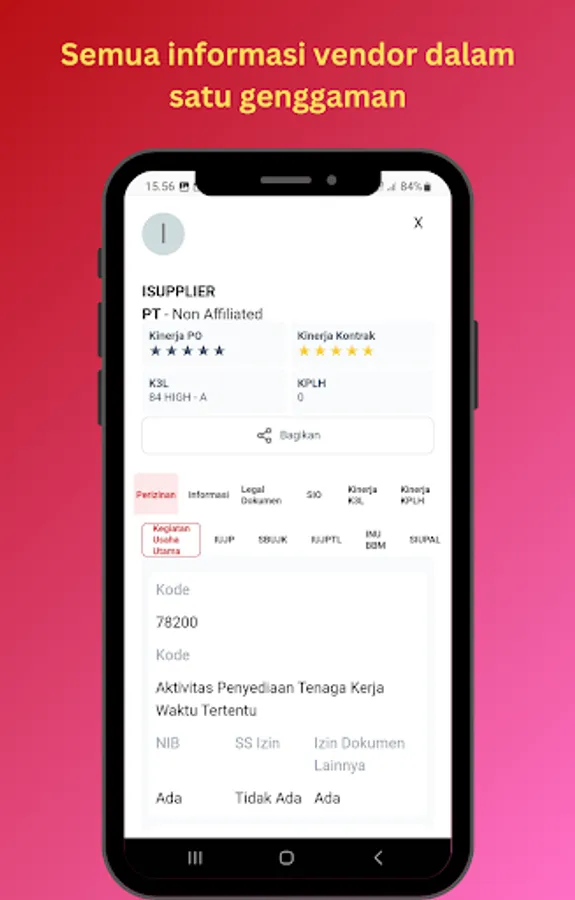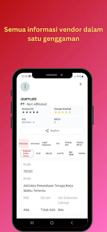 *Melihat profil vendor (Perizinan kegiatan,score K3L dan KPLH)