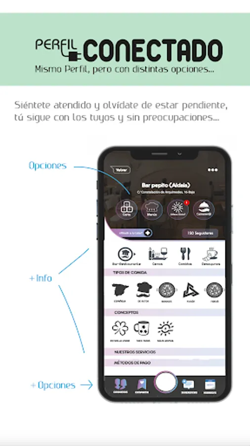 -Gossip on their Profile and all their options “Get to know us, Hours, Menus, etc…”, take a look at all the possibilities that your establishment offers you without leaving the table.