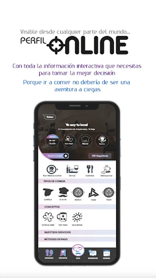 Put an end to your questions and discover new charming places wherever you need them. Whether from the comfort of your couch or in your new vacation spot. Thanks to the main screen of the App, which is designed to show you the closest ones, you can find and know everything you need near your location or gossip as you like by moving around the Map. Click on their logo and you will discover everything you need to know from their Online Profile.