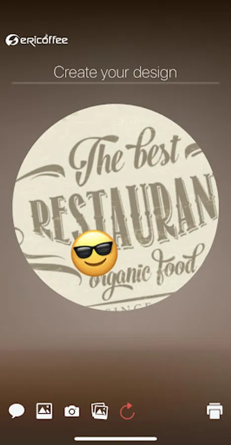 Application for sending both personalized images and texts from any mobile device to the Ericoffee food printing equipment that will be able to reproduce these images in your favorite beverage or food.