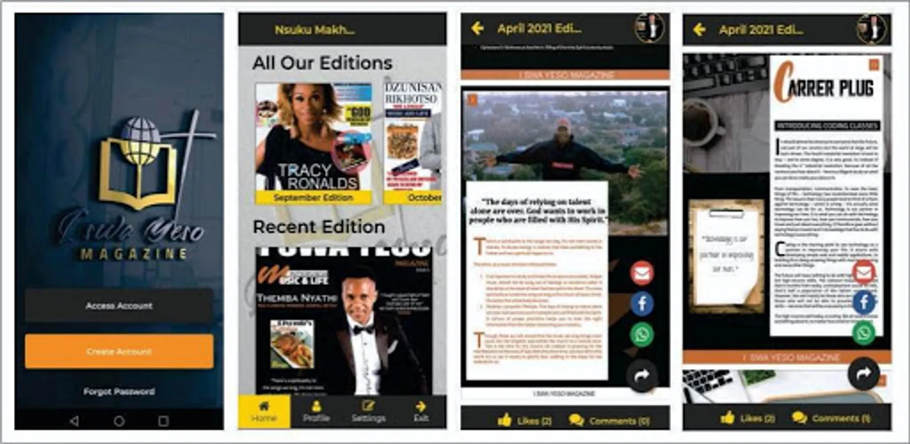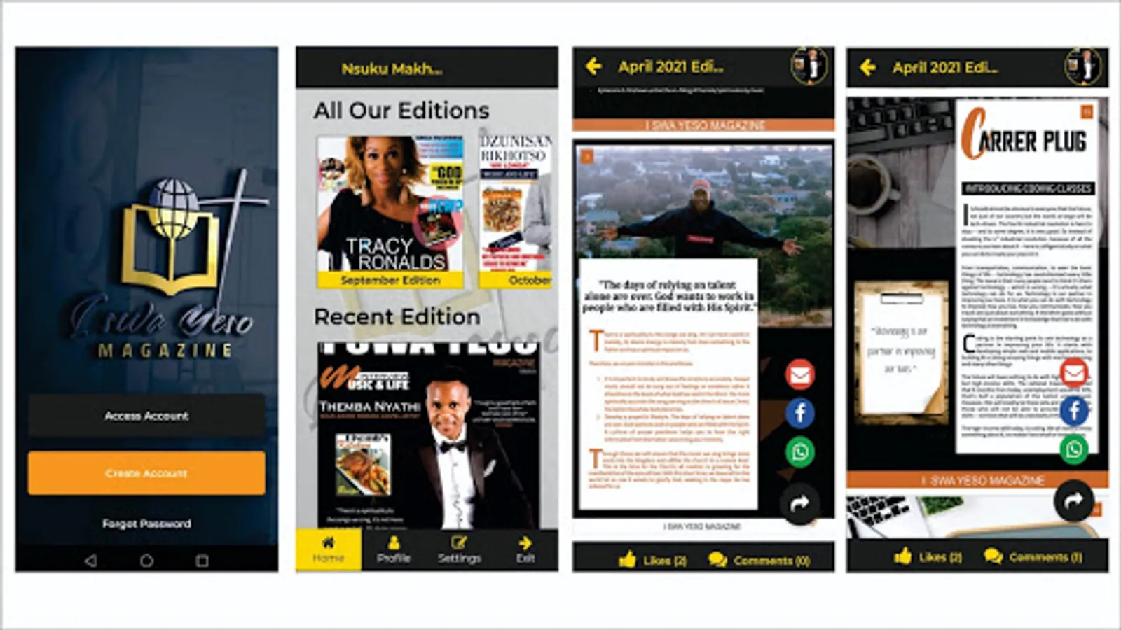 I Swa Yeso - which, when translated to English means - "It's for Jesus". We bringing you an app that will keep all of our magazines, previous and current editions all in one place, so you no longer need to download them individually - but you can always use this app, not only to read but to also comment on some articles, like, and share with others.