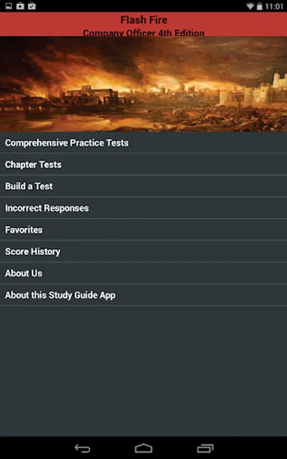 Flash Fire allows you to take a comprehensive exam, study questions from a specific chapter of the book, or even build your own exam based on the chapters you wish to study. Our exam prep app allows you to "favorite" questions you would like to review, and will even save all questions you answered incorrectly on any test so you can go back and look at them again.