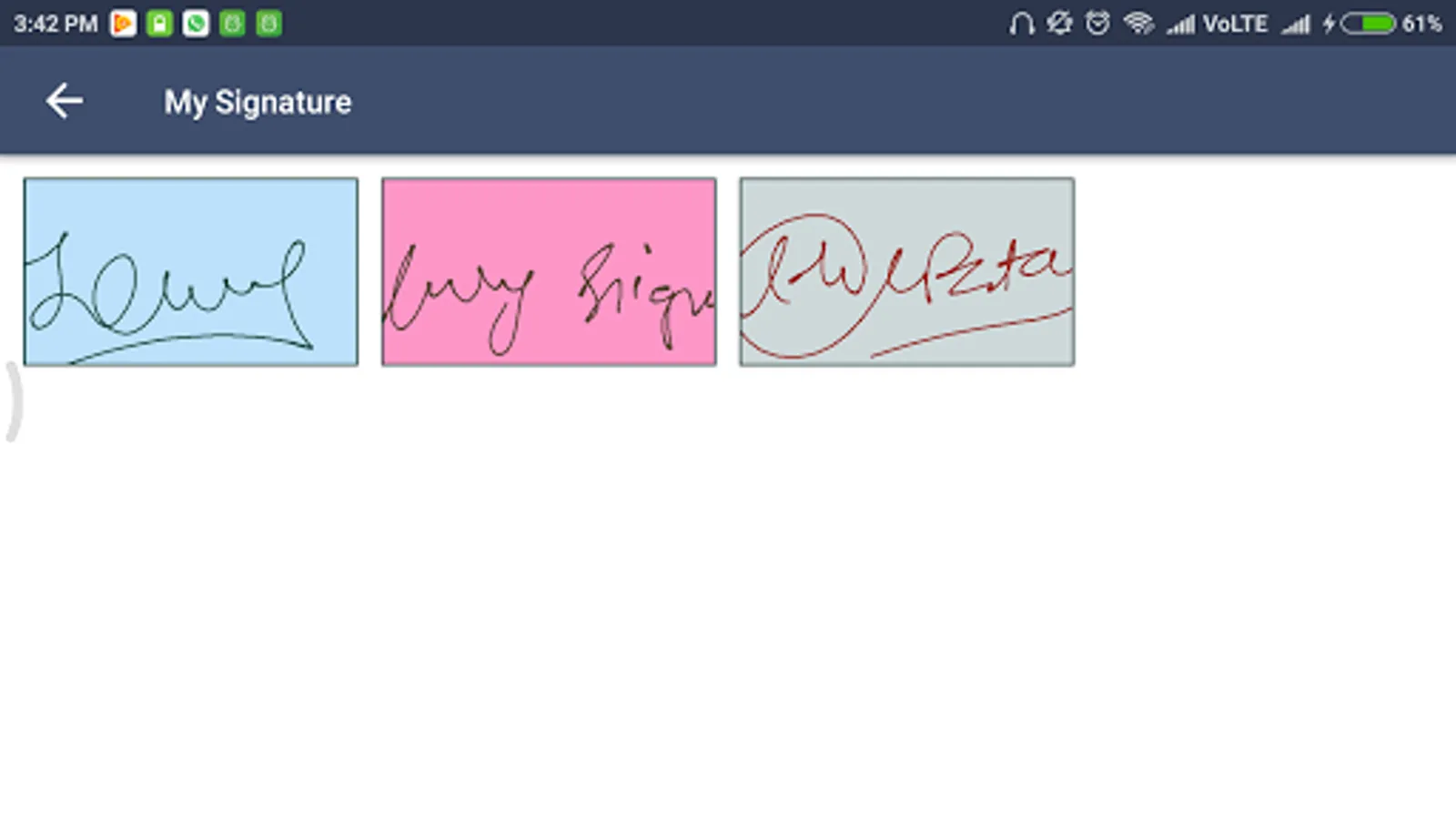My Signature represents an intuitive gesture based signature platform that allows you to create your own create signature on Android phone.