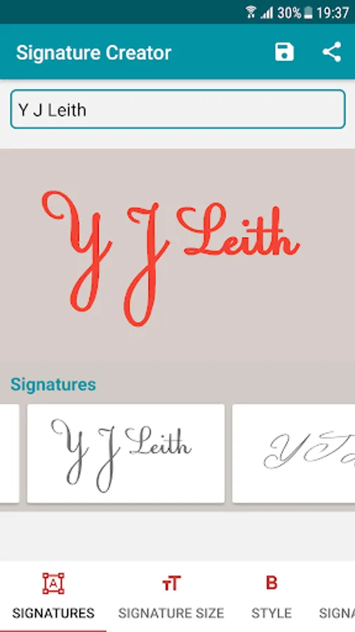 You can create your creative signature with 100+ autograph styles and with 400+ colors and with x-small to x-large font size.