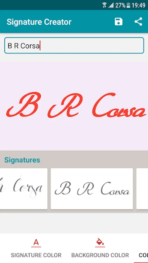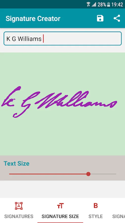 Auto Signature Creator represents an intuitive signature platform that allows you to create your own create signature on Android phone.
