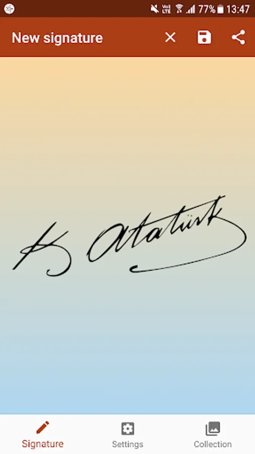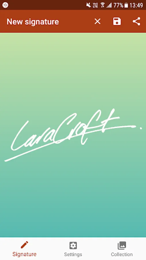 Signature Creator Lite (2.5 MB) represents an intuitive signature platform that allows you to create your own create signature on Android phone.