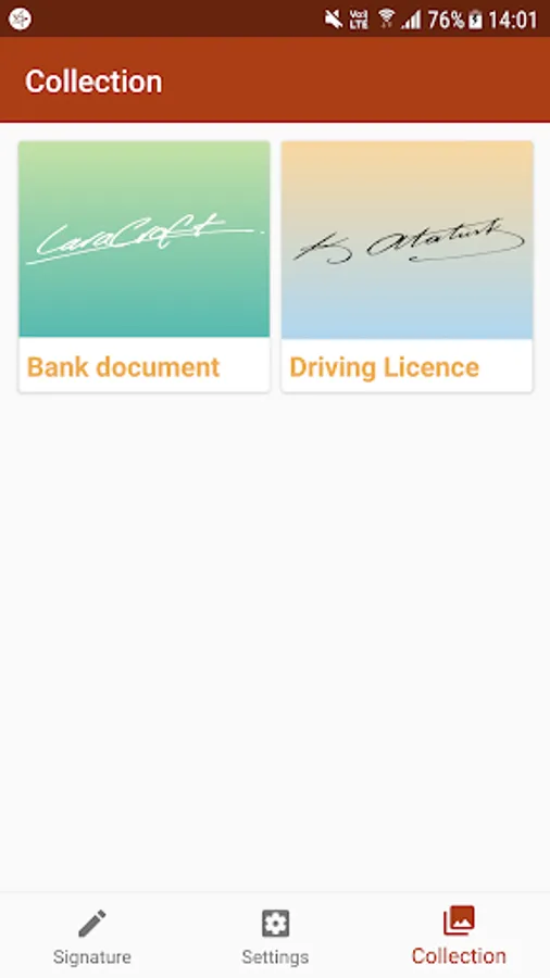 We have provided Signature name functionality so you do not need to remember which signature I did at Bank, Election card, Driving licence, College, Government office etc.