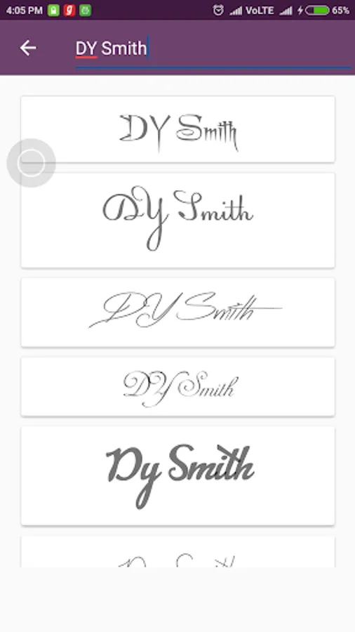 You can create your creative signature with 85+ autograph fonts and with 900+ colors and with x-small to x-large font size.