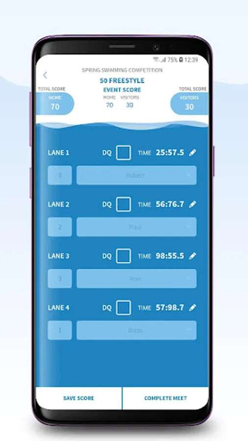 Paperless way to score high school swim meets. No prior experience with written score sheets required with this app. Any team helper can do it. No math skills required. Just complete the requested data fields prior to the meet, then enter the results in the scoring section of the app during the meet. Keeps score of each individual event and the total score at the same time. Email results via a CSV file and includes a signature pad for the referee’s signature. Archived meet stays on the app for reference if needed. Incorporates NFHS scoring rules.