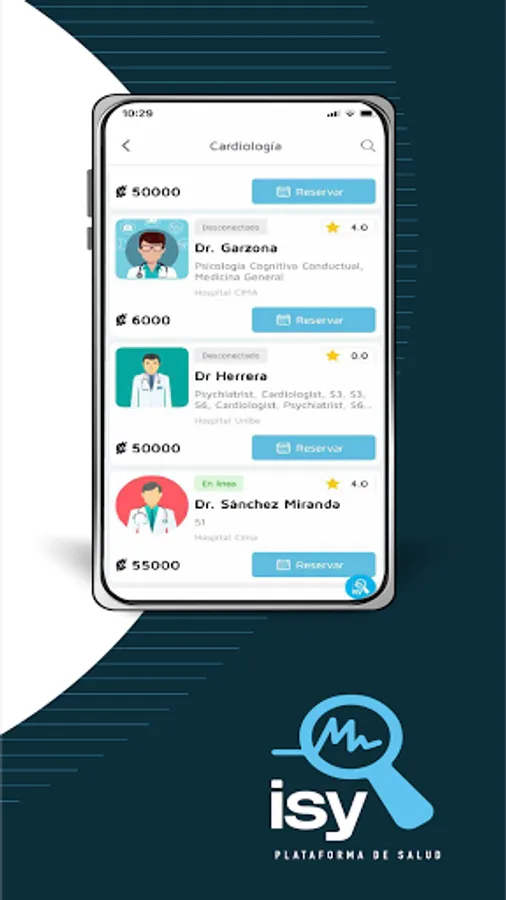 ISY es una plataforma que le ofrece de forma ágil y segura agendar citas con profesionales de salud de todas las ramas. Elija la fecha y el tipo de consulta en clínica, telesalud o a domicilio y ¡listo! Desde nuestra app puede chatear o recibir la videollamada con el profesional, puede compartir además documentos entre otros beneficios. Usted merece lo mejor, descargue la aplicación, regístrese y listo. ¡ISY es así de fácil!