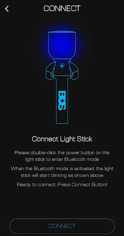 Turn on the light stick and press the button twice to enter Bluetooth mode.