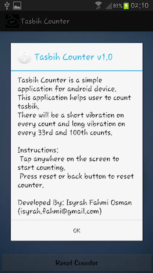 Tasbih Counter is a simple application for android device. This application helps user to count tasbih.