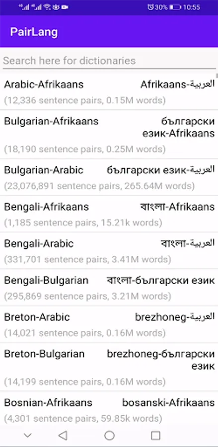 - Each rule contains a very large number of translated records or sentences (for example an English-Arabic base contains 30 million sentences, and the Hebrew-Arabic base contains about 20 million sentences)