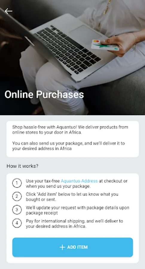 Business or Individual? Aquantuo lets you shop your favorite online stores, provides you with an address in the USA, UK, China and Canada and delivers your packages to your door in Ghana, Kenya, Uganda, Nigeria, Rwanda, Tanzania, DRC and Zambia.