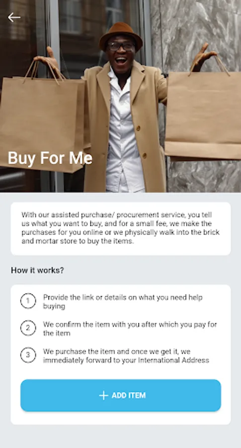 Want to complete your shopping at your own pace? No worries. Simply purchase and ship your items to us. We'll consolidate and forward them to your desired location in Ghana, Kenya, Uganda, Nigeria, Rwanda, Tanzania, DRC or Zambia.